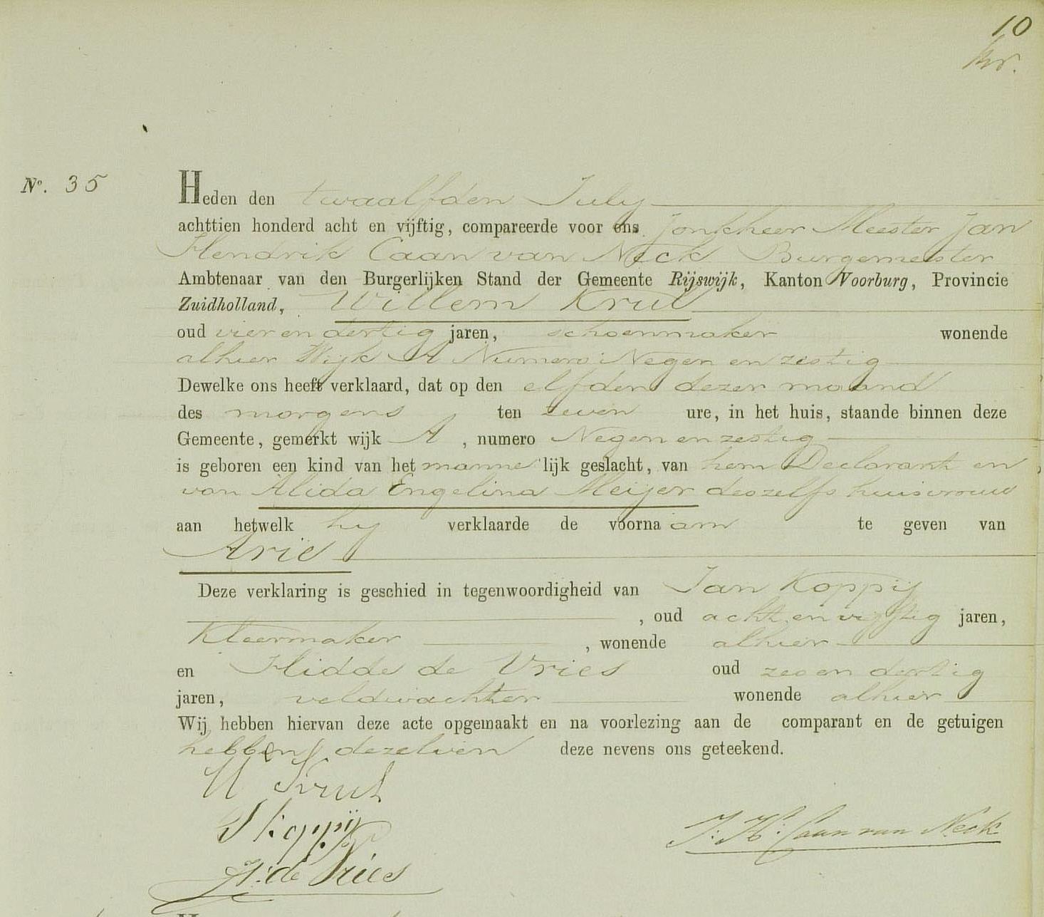 -Aangifte geboorte ma 12 jul 1858; BS Rijswijk, Akte 35