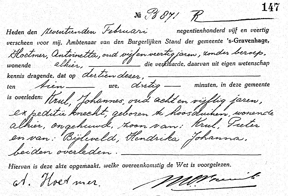 | Overleden | di 13 febr 1945 te Den Haag Ongehuwd |
